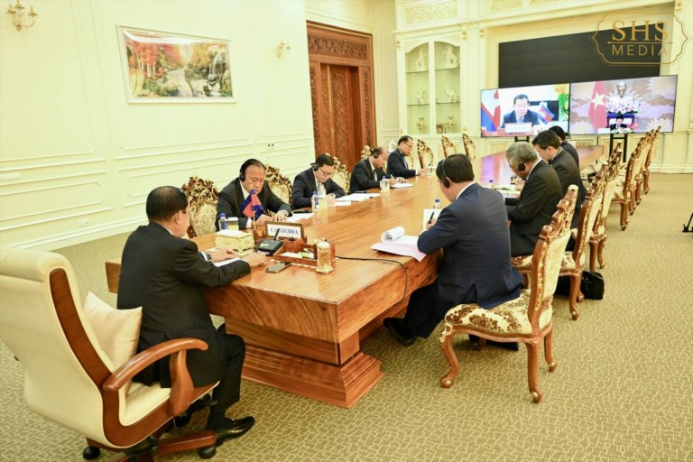 ថ្ងៃសុក្រ ១២ រោច ខែផល្គុន ឆ្នាំថោះ បញ្ចស័ក ពុទ្ធសករាជ ២៥៦៧ ត្រូវនឹងថ្ងៃទី៥ ខែមេសា ឆ្នាំ២០២៤ សម្តេចអគ្គមហាសេនាបតីតេជោ ហ៊ុន សែន ប្រធានព្រឹទ្ធសភា នៃព្រះរាជាណាចក្រកម្ពុជា ដែលកំពុងបំពេញភារកិច្ចជាប្រមុខរដ្ឋស្តីទី បានជួបពិភាក្សាការងារជាមួយ ឯកឧត្តម វឿង ឌិញវ៉េ សមាជិកការិយាល័យនយោបាយ និងជាប្រធានរដ្ឋសភា នៃសាធារណរដ្ឋសង្គមនិយមវៀតណាម តាមប្រព័ន្ធវីដេអូ។