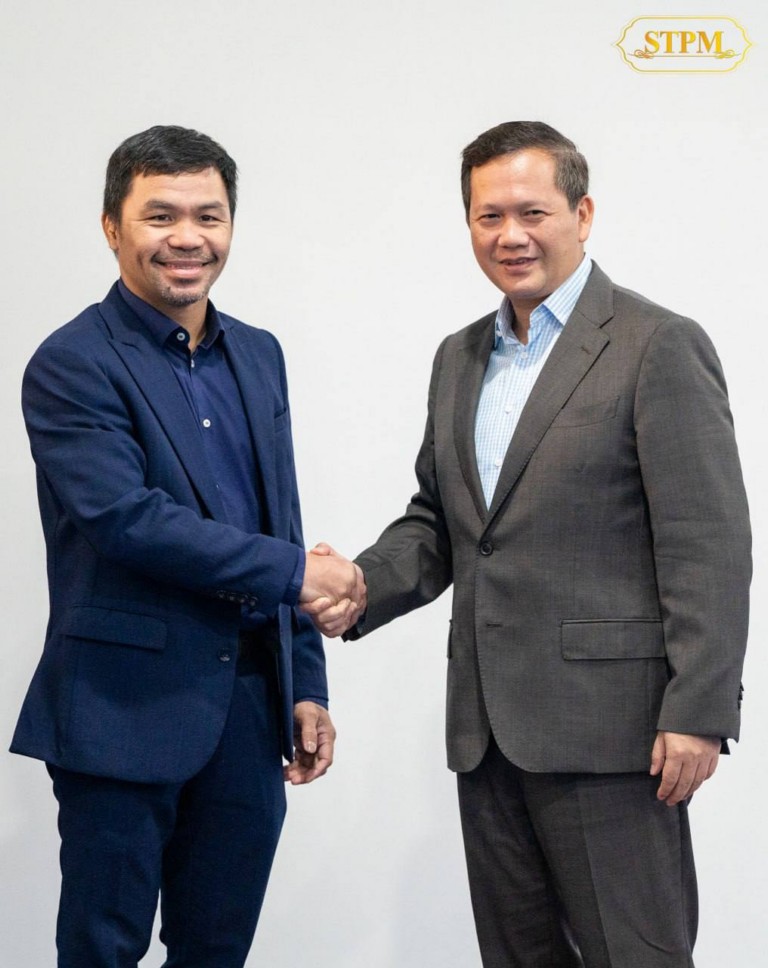 នារសៀលថ្ងៃទី៣០ ខែឧសភា ឆ្នាំ២០២៤ សម្តេចមហាបវរធិបតី ហ៊ុន ម៉ាណែត នាយករដ្ឋមន្ត្រី នៃព្រះរាជាណាចក្រកម្ពុជា បានអនុញ្ញាតឱ្យលោក ម៉ានី ប៉ាគីអាវ (Manny Pacquiao) កំពូលកីឡាករប្រដាល់កម្រិតពិភពលោក និងជាអតីតសមាជិកព្រឹទ្ធសភា នៃសាធារណរដ្ឋហ្វីលីពីន ចូលជួបសម្តែងការគួរសម និងពិភាក្សាការងារ នៅវិមាន៧មករា។