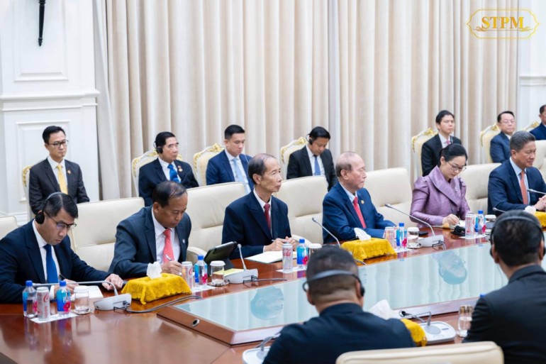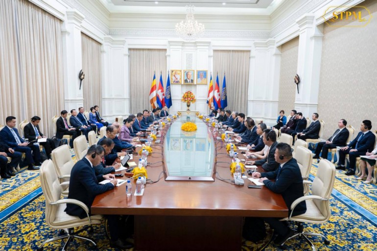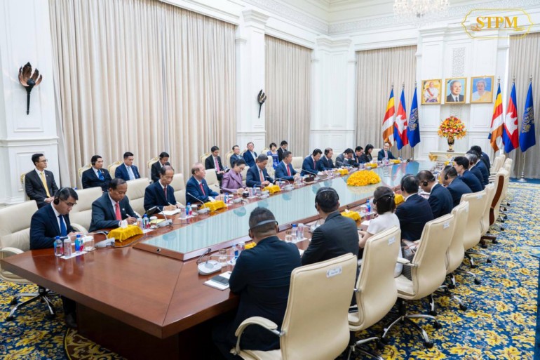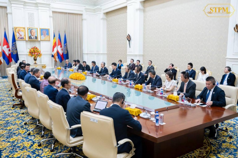 ភ្នំពេញ ៖ នា​ព្រឹក​ថ្ងៃទី ១៣ សីហា ឆ្នាំ ២០២៤ សម្តេច​ធិបតី ហ៊ុន ម៉ា​ណែ​ត នាយករដ្ឋមន្ត្រី នៃ​ព្រះរាជាណាចក្រ​កម្ពុជា បានអនុញ្ញាត​ឲ្យ លោក Wen Zhan Bin លេខា​គណៈកម្មាធិកា​របក្ស នៃ​ទីក្រុង​សាន​ថូ​វ ខេត្ត​ក្វាង​តុង សាធារណរដ្ឋ​ប្រជាមានិត​ចិន និង​គណៈប្រតិភូ​ក្រុមហ៊ុន​ចំនួន ០៩ ចូលជួប និង​ពិភាក្សា​ការងារ នៅ​វិមាន​សន្តិភាព ។​