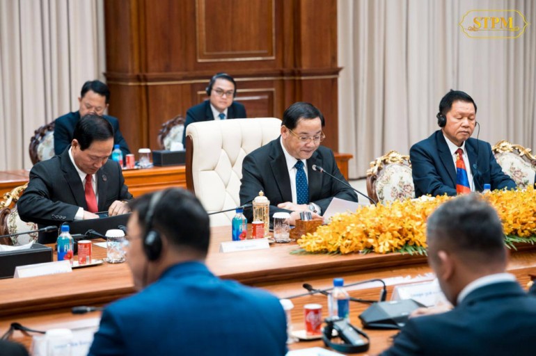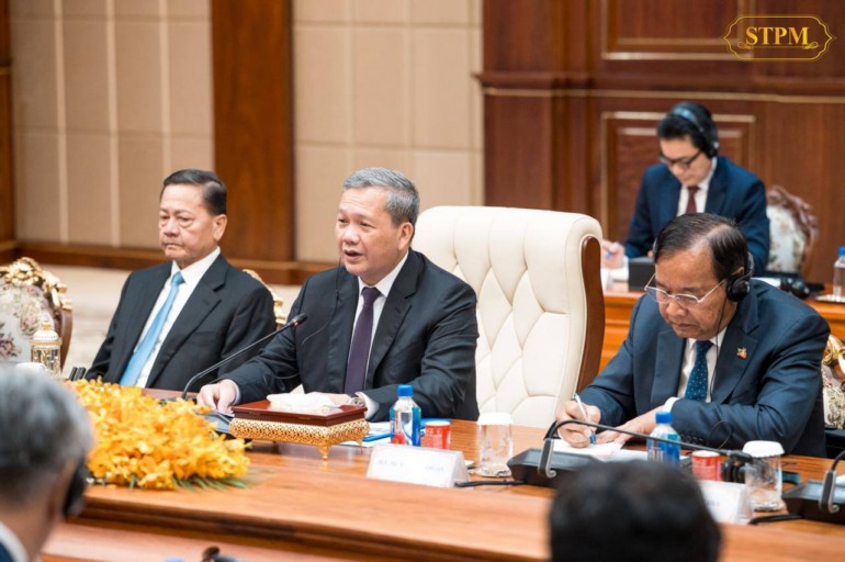 នារសៀលថ្ងៃទី០៧ ខែកុម្ភៈ ឆ្នាំ២០២៦, សម្តេចមហាបវរធិបតី ហ៊ុន ម៉ាណែត នាយករដ្ឋមន្ត្រី នៃព្រះរាជាណាចក្រកម្ពុជា បានទទួលជួបពិភាក្សាការងារជាមួយ ឯកឧត្តម សនសៃ ស៊ីផាន់ដន (Sonexay Siphandone) នាយករដ្ឋមន្ត្រីនៃសាធារណរដ្ឋប្រជាធិបតេយ្យប្រជាមានិតឡាវ នៅវិមានសាមគ្គីភាព ក្នុងឱកាសដែលឯកឧត្តមនាយករដ្ឋមន្ត្រីឡាវអញ្ជើញចូលរួមកិច្ចប្រជុំរវាងថ្នាក់ដឹកនាំកំពូលគណបក្សប្រជាជនកម្ពុជា, ថ្នាក់ដឹកនាំកំពូលគណបក្សកុម្មុយនីស្តវៀតណាម និងថ្នាក់ដឹកនាំកំពូលគណបក្សប្រជាជនបដិវត្តន៍ឡាវ នៅរាជធានីភ្នំពេញ ព្រះរាជាណាចក្រកម្ពុជា ពីថ្ងៃទី៦ដល់ថ្ងៃទី៧ ខែកុម្ភៈ ឆ្នាំ២០២៦។